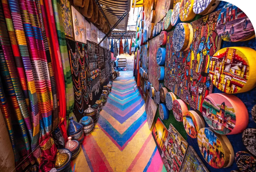 The art of Morocco is vibrant and detailed, from the geometric patterns of Zellige tilework to the fine embroidery on traditional garments. In the bustling souks, visitors can find handmade carpets, pottery, and jewelry that reflect Morocco’s rich artistic heritage. Moroccan craftsmanship is meticulous, with symbolic motifs like the hand of Fatima, or “Khamsa,” believed to protect against the evil eye. Every piece is a unique work of art, showcasing the creativity and talent of Moroccan artisans.